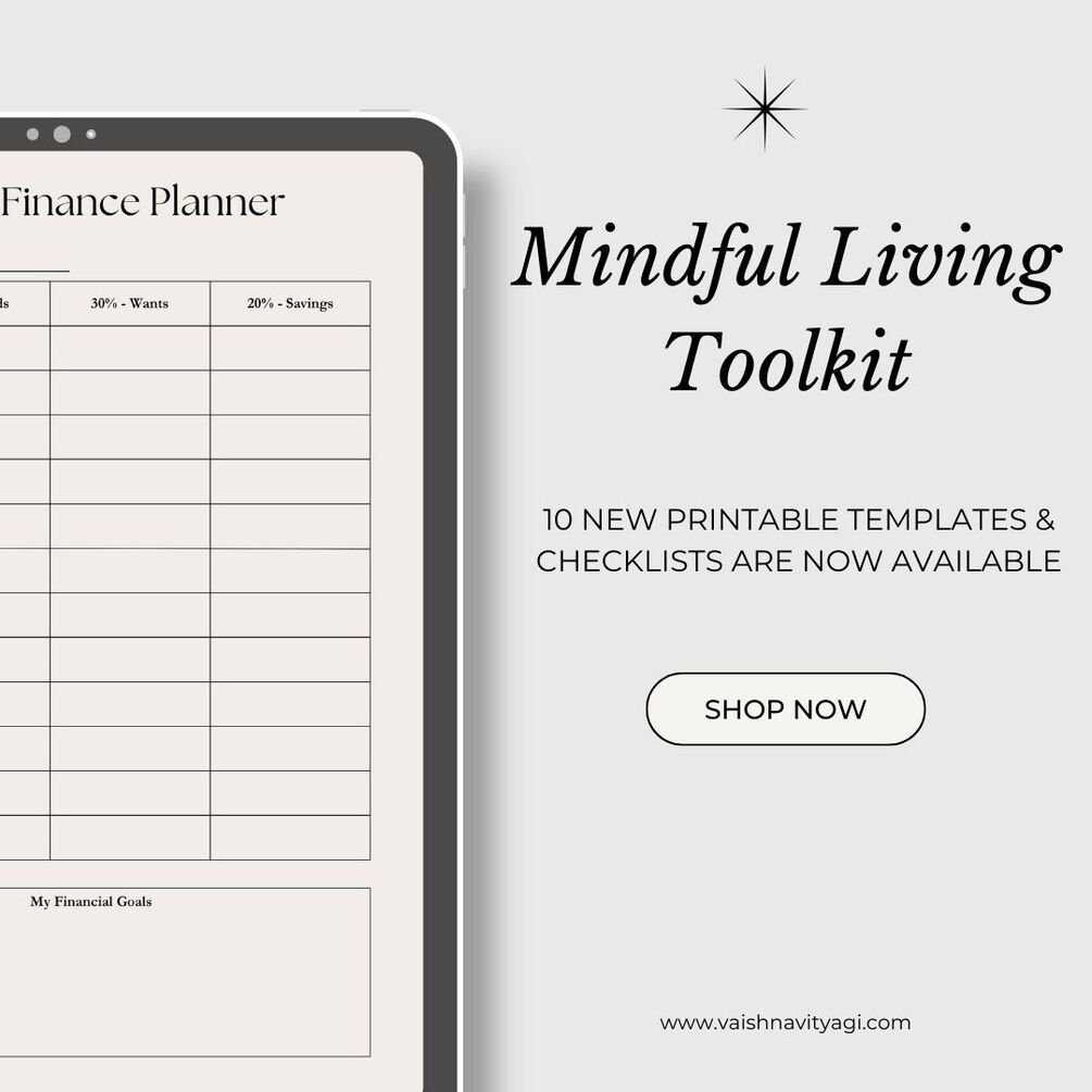 Mindful Living Toolkit with Printable Templates and Checklist is designed to simplify your daily life with mindful shopping tools, financial tracking, behaviour tracking and much more. It helps to develop Mindfulness and Consistency with actions aligned with your goals.