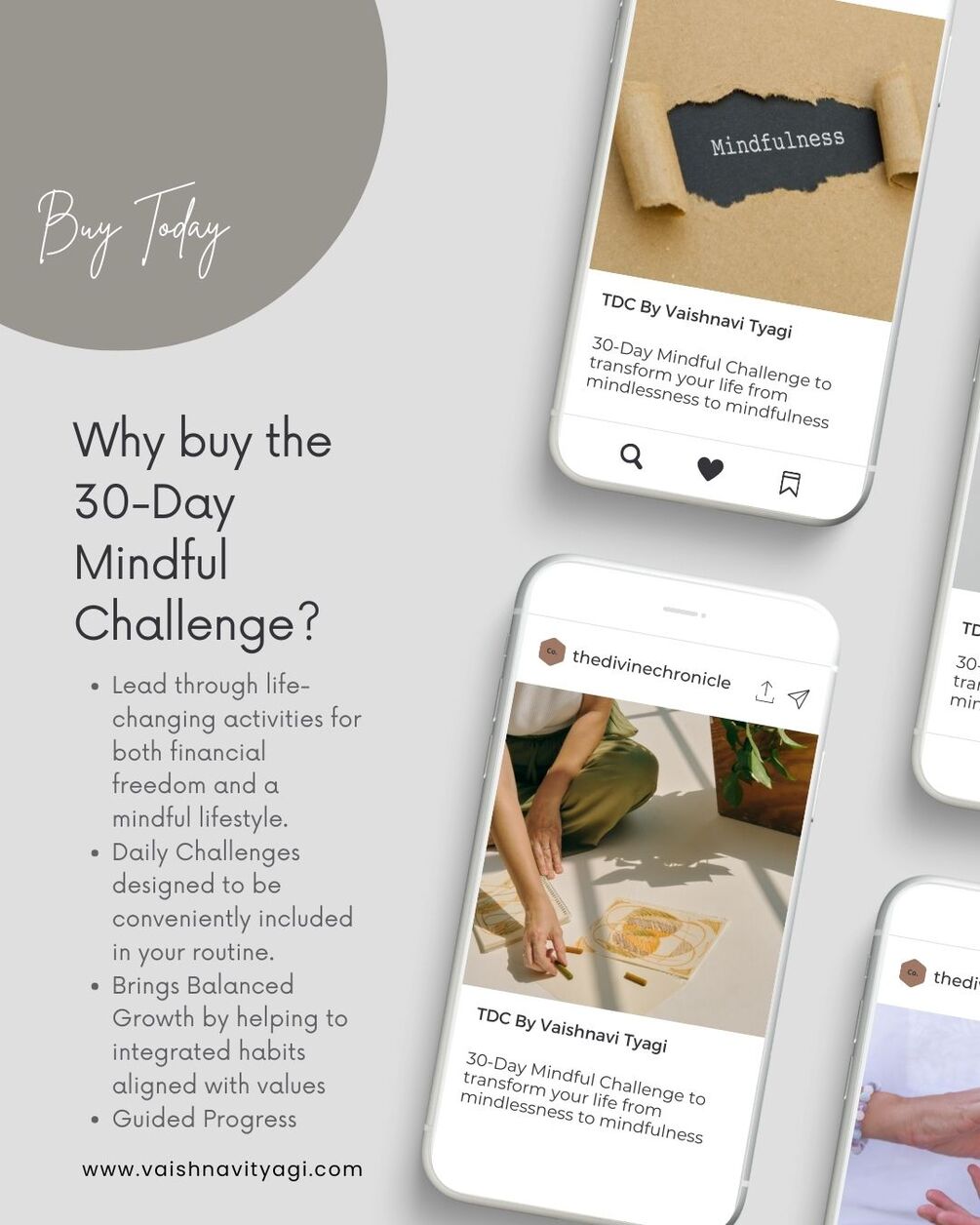 30-Day Mindful Spending Challenge is your 30-day road map to mindful living and transforming your relationship with money. It is carefully crafted to help you lead through life-changing activities that create the foundation for both financial independence and a fulfilling life. Each day consists of daily tasks that aim at providing empowerment, balanced growth, financial independence, better handling of triggers, and developing a 360-degree approach towards sustainability. These easy-to-perform daily challenges help you take action to finally live a mindful life aimed at taking accountability for finances and lifestyle. You won't need a lot of time every day but 10-15 minutes to get on your mindful spending journey. Trust us that you will be a different yet mindful person on the 30th day.